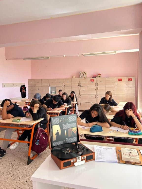 EDEBİYAT DERSİ DİNLEME SINAVI KAPSAMINDA TÜRK DİLİ VE EDEBİYATI ÖĞRETMENİMİZ CENNET KEREMLİ ÖĞRENCİLERİMİZE GRAMOFON DİNLETİSİ EŞLİĞİNDE SINAV GERÇEKLEŞTİRDİ.